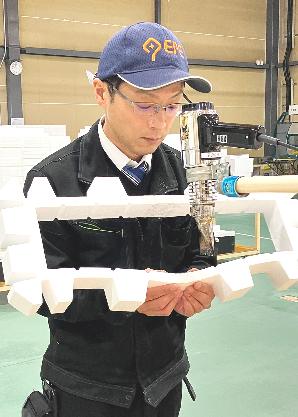 入社前、緩衝材といえば、家電を買ったときに箱の中にはまっている発泡スチロールを想像していました。大量生産のラインで同じものをどんどん作っているのかと思っていたら、実際は素材を切ったり貼ったりしながら、一つひとつ手作業で仕上げていく仕事が多く、想像以上に手作業の多さに驚きました。それぞれの製品ごとに仕様が違い、細かい調整や工夫が必要になるんですよね。